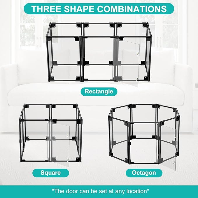 Clear Acrylic Dog Playpen with Door | 35x35x25 Inch Adjustable Pet Playpen | Instant Setup Indoor Dog Pen for Small/Medium Dogs | Hexagon, Octagon Configurations (Black, 8)