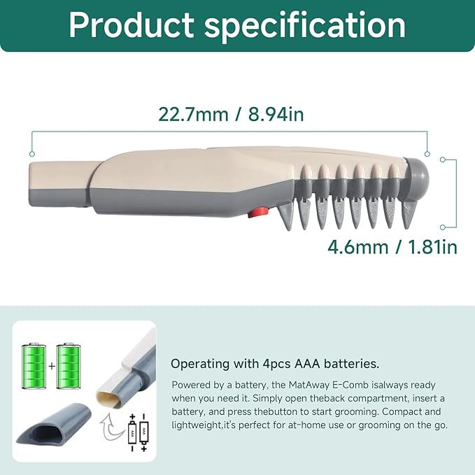 • 【Quiet and Calming】The ultra-quiet operation of the Mataway E Comb helps keep your pets calm during grooming, ideal for nervous or first-time groomers.