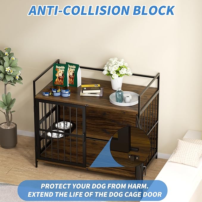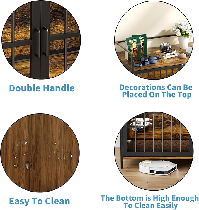 - MULTIFUNCTIONAL DOG CRATE TABLE — Simple and retro dog kennel furniture, suitable for various decoration styles. It is not only a dog cage for dogs, but also can be used as a side table, coffee table, or bedside table. The wide top can be used to place decorations or dog food, photo albums, small and medium-sized plants, magazines, etc
