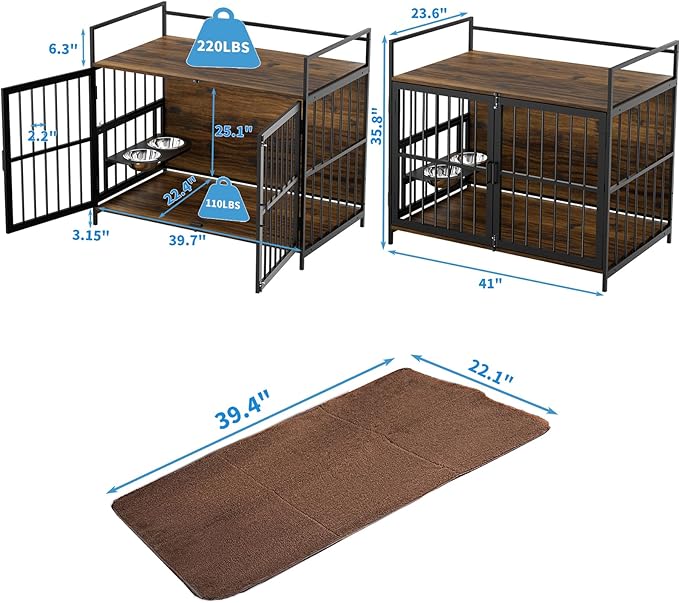 - STURDY HEAVY DUTY DOG CRATE — The dog cage is made of upgraded steel pipes and high-quality particleboard. The iron pipe is reinforced and the surface is spray-painted, which increases durability and bite resistance. It will not rust or fade after long-term use. The thickened 0.6-inch wooden board has a strong load-bearing capacity and can carry 200 pounds, giving your dog a safe environment