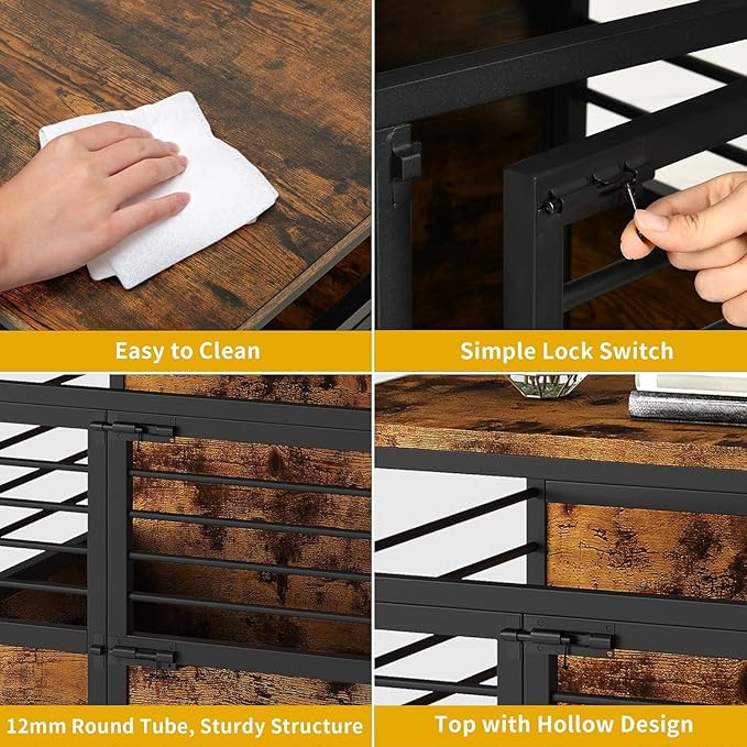 • Simple Setup & Cleaning: Assembling this dog crate furniture is a breeze with pre-labeled parts, included accessories, and clear instructions. Even first-timers can put it together easily! The wooden top and metal frame are a cinch to clean, saving you from tedious chores
