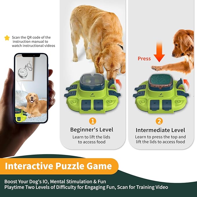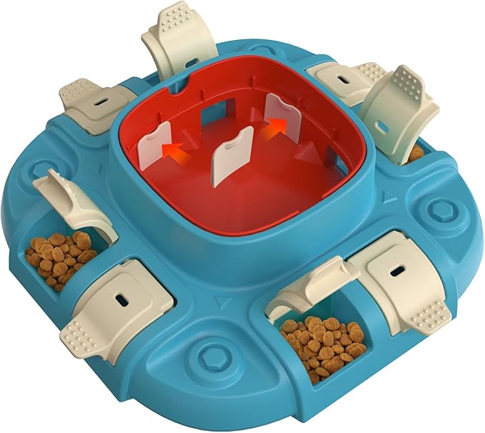 • Exclusive Food Drop Control Baffle – Precision Treat Dispensing: Features a unique inner baffle to control the speed at which treats drop—a function no other competitor offers. This refined treat-release mechanism slows down the reward process and challenges your dog intellectually, making it a great dog enrichment toy with smart puzzle mechanics.