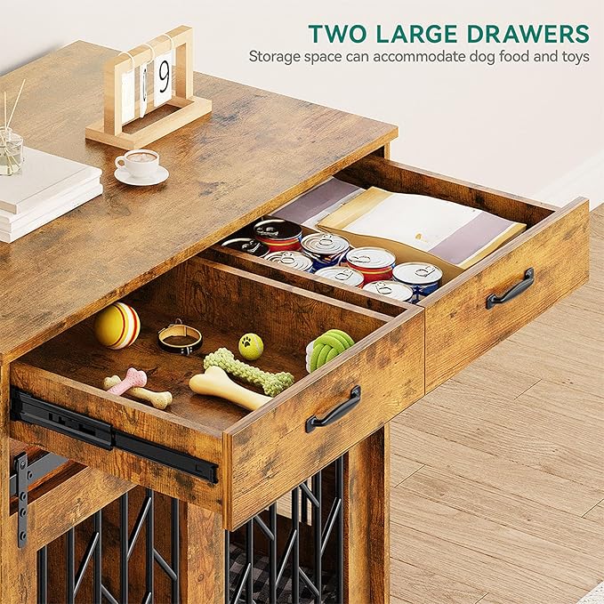 • Ample Storage Space: Our furniture dog crate offers convenient storage options with two drawers to store dog treats and a generous 39.3’’x25.1’’ top panel that’s perfect for displaying picture frames, vases, magazines, and more; Keep everything you need within reach and organize your space to be clutter-free
