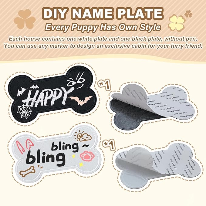 • Cute Dog Bed: The dog tent features a side storage pocket for toys, convenient to quick playtime and bonding moments. Besides, it adds a diy name plate to create an exclusive cute bed that's uniquely theirs! Every puppy has own style