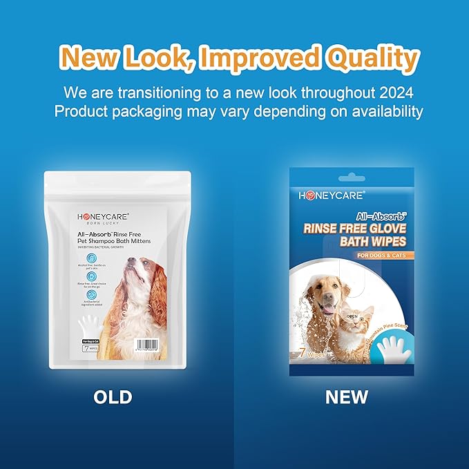 HONEY CARE All-Absorb Disposable Pet Grooming Gloves Wipes for Dogs & Cats Fur Deodorizing & Cleaning (7 Gloves/Pack, 6 Packs, 42 Wipes Total)