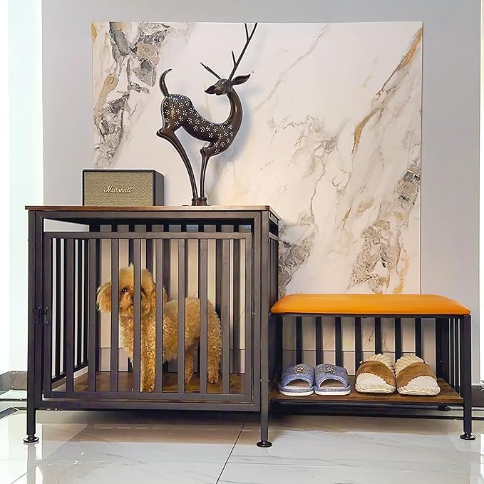 • Sturdy Build for Longevity: The furniture-style dog cage features thickened iron tubes and heavy-duty Laminate wooden panels. The quality is strong enough to survive the use of anxious puppies,and strong locks don't make a lot of noise