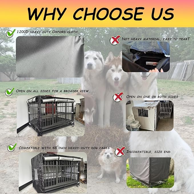 • Perfect Fit for 48" Crates Dimensions: 48"L x31"W x33"H. Designed for wheeled heavy-duty dog cages. Always measure your crate before ordering (cover only, crate not included).
