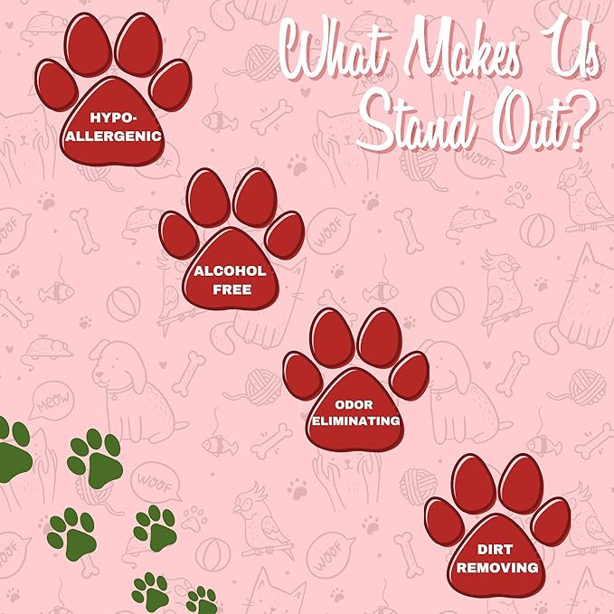 • PET WIPES: Our wipes come in various gentle scents and are hypo-allergenic, alcohol free, and deodorizing.