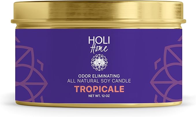 HOLI Pet Odor Eliminator Candle – Tropicale Scent – All Natural Soy Wax, Paraben & Phthalate Free, Pet Safe, Long-Lasting 60-Hour Burn, Non-Toxic & Plastic-Free Air Freshener for Home