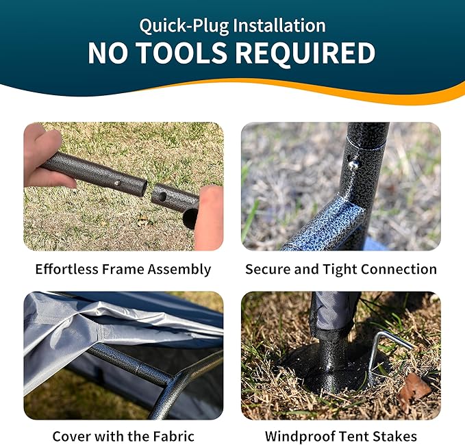 Extra Large Dog House Outdoor with Three-Sided Breathable Mesh Windows, Dog Tent Outside Doghouse Canopy with Ground Stakes, Sun Rain Cover for Cat Goat Livestock Pet, 4'x 4'x 3.3', Gray