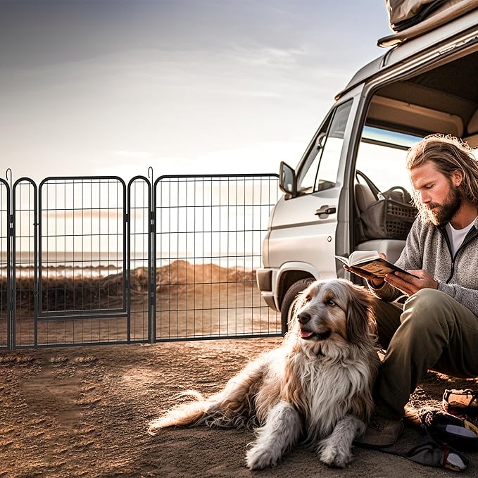 • 【Sturdy Metal Construction】--The dog playpen is constructed from sturdy iron material with a rust-resistant coating, anti-rust, anti-corrosion, waterproof and UV resistant, which makes it ideal for RV camping, traveling, or for use in the yard.