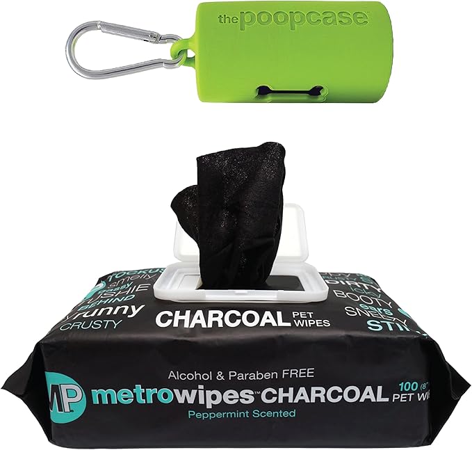 MetroPaws Peppermint Dog Wipes, 100 Extra Large, Thick Cleaning Wipes & The Dog Waste Bag Dispenser & Holder, Bag Holder With 20 Bags for Leash - Lime