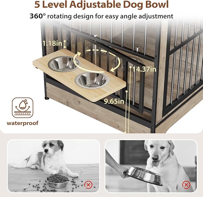 • Durable Materials & Easy Maintenance: Made from P2-grade MDF and steel, this sturdy, stylish wooden dog crate is easy to clean and offers a more durable option than wire crates.