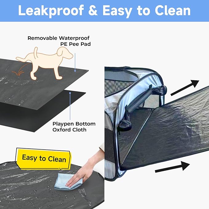 • 【Upgraded Durability】Engineered with heavy-duty metal frame and anti-chew reinforced mesh, this playpen combines anti-tear Oxford fabric with protected seams to ensure long-lasting durability.