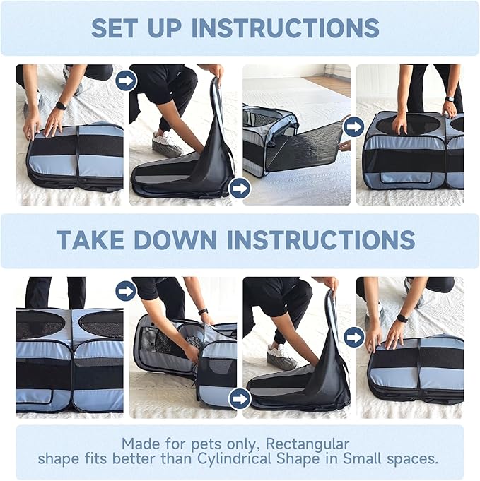 • 【Instant Setup, 2-in-1 Spacious】Pop-open rectangular or octagonal design playpen that require zero assembly – simply unfold within seconds. When need to store it, the collapsible playpen folds flat easily and stored into a compact carry case, making it ideal for indoor/outdoor use. The spacious 2-in-1 design gives more space for small animals to roam.