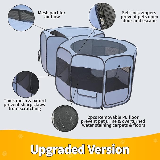 • 【Upgraded Durability】Engineered with heavy-duty metal frame and anti-chew reinforced mesh, this playpen combines anti-tear Oxford fabric with protected seams to ensure long-lasting durability.