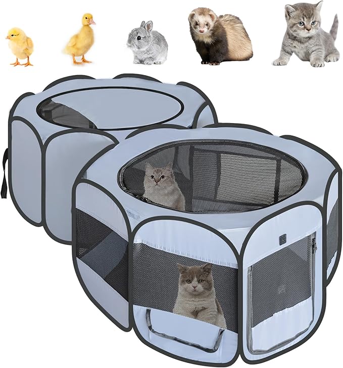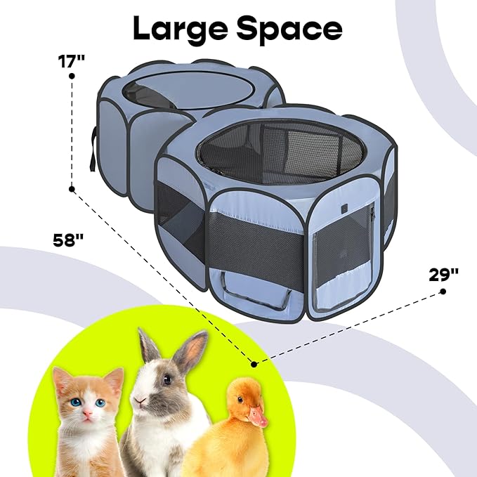 • 【Instant Setup, 2-in-1 Spacious】Pop-open rectangular or octagonal design playpen that require zero assembly – simply unfold within seconds. When need to store it, the collapsible playpen folds flat easily and stored into a compact carry case, making it ideal for indoor/outdoor use. The spacious 2-in-1 design gives more space for small animals to roam.