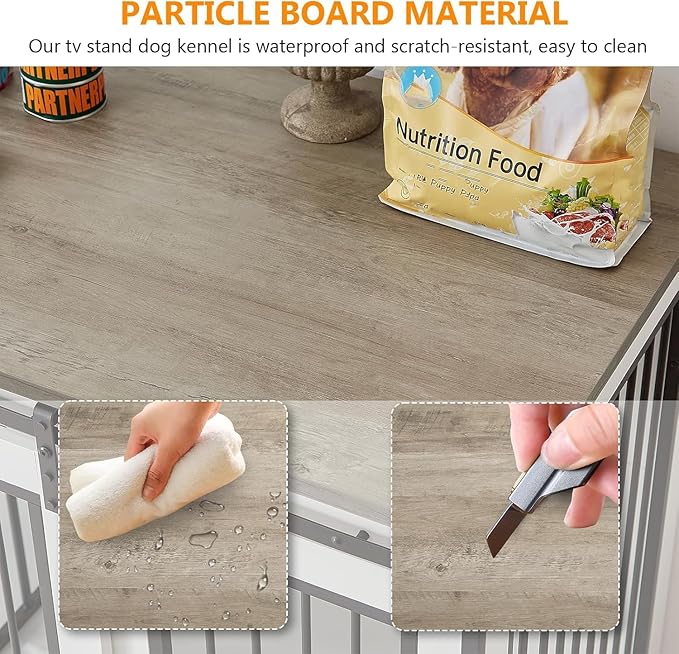 • 【Multifunctional Design】More than just a dog kennel indoor, this unit doubles as a TV stand with ample tabletop space for your electronics or other household items, perfect for relaxing with your pets.